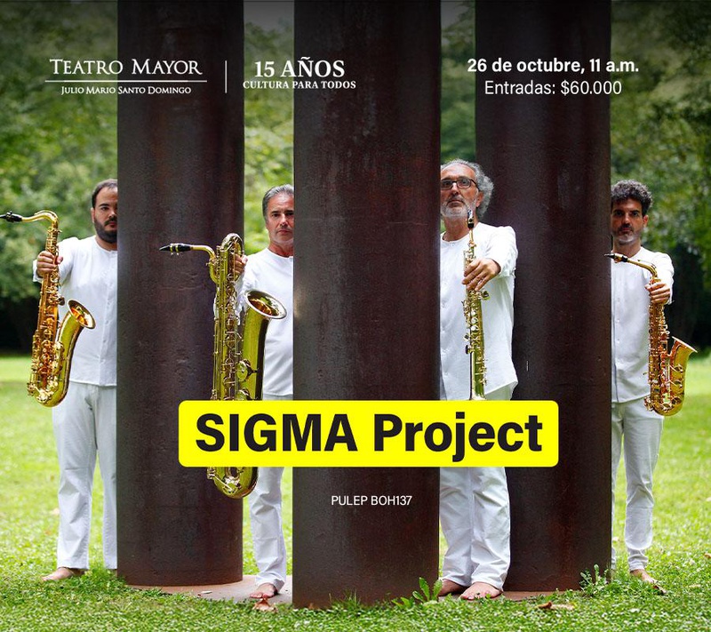 - ‘Cuatro artificios’ de Juan Antonio CuellarEl destacado cuarteto de saxofones SIGMA Project, agrupación vasca conformada por Andrés Gomis, Ángel Soria, Alberto Chaves y Josetxo Silguero, presentará en este concierto su nuevo proyecto discográfico con obras de los compositores colombianos Carolina Noguera, Juan Antonio Cuéllar y Rodolfo Acosta comisionadas por el Teatro Mayor Julio Mario Santo Domingo.